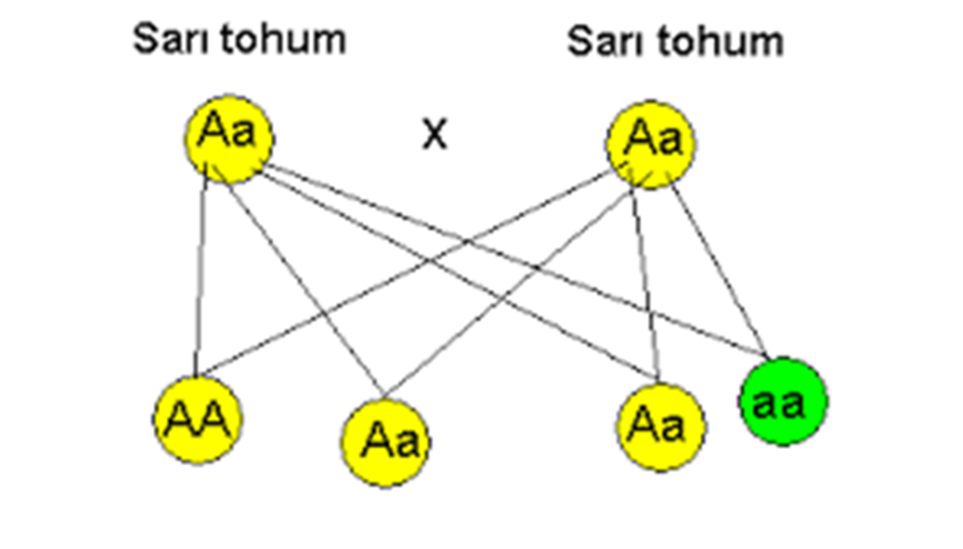 [Sarı Tohum: baskın (A), Yeşil tohum: çekinik (a)]